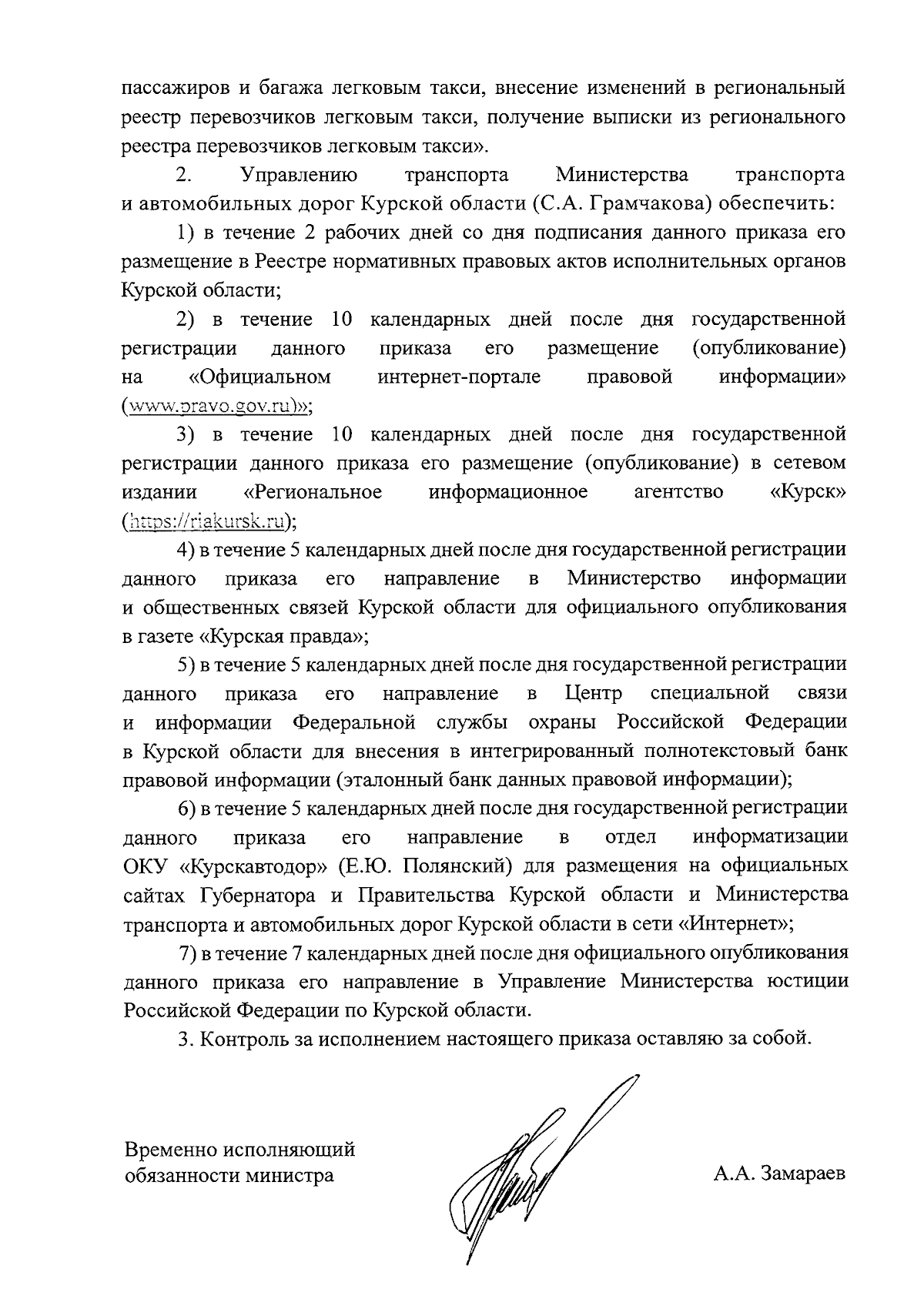 Приказ Министерства транспорта и автомобильных дорог Курской области от 16.12.2024 № 253