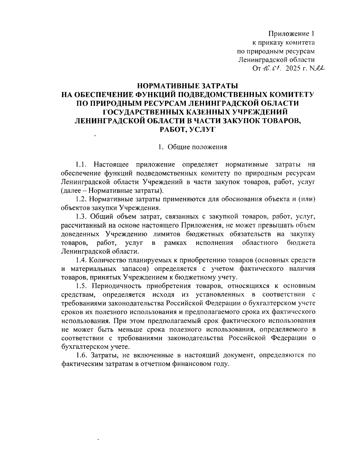 Приказ Комитета по природным ресурсам Ленинградской области от 10.01.2025 № 22
