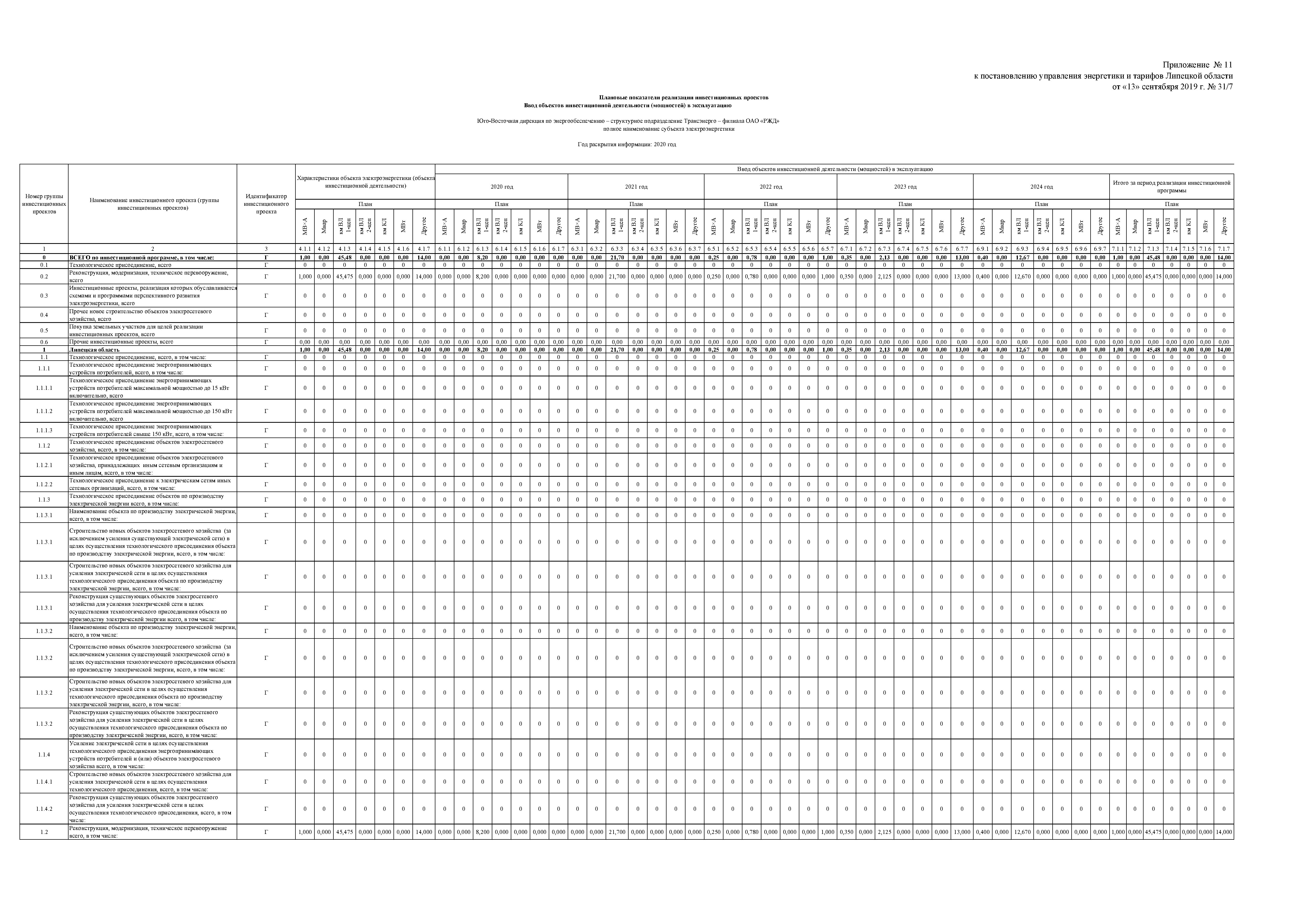 Постановление Управления энергетики и тарифов Липецкой области от 13.09.2019 № 31/7