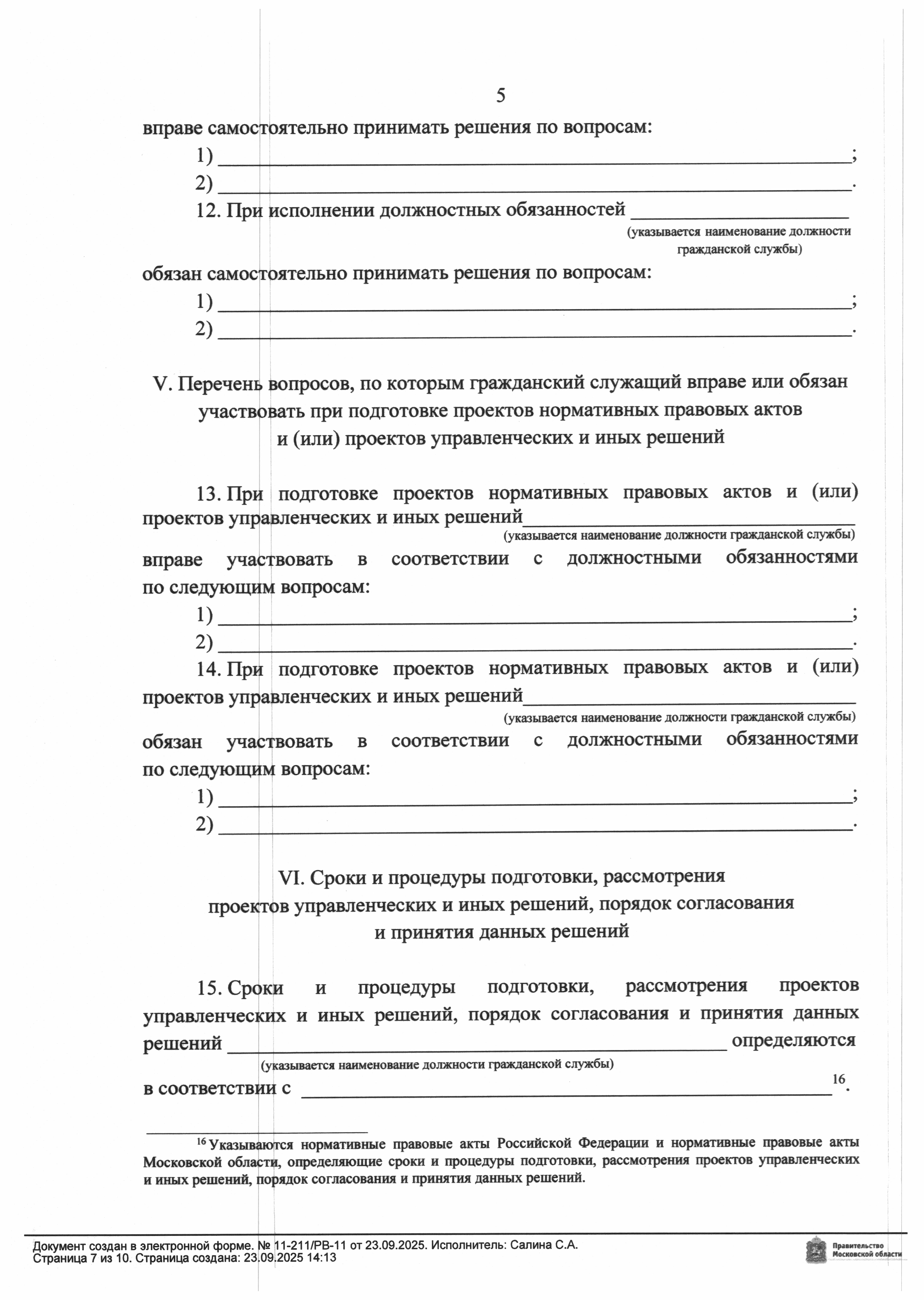 Распоряжение Министерства государственного управления, информационных технологий и связи Московской области от 23.09.2025 № 11-211/РВ-11