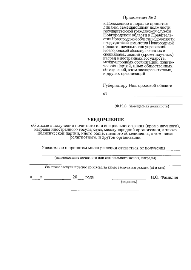 "Об утверждении Положения о порядке принятия лицами, замещающими должности государственной гражданской службы Новгородской области в Правительстве Новгородской области и должности председателей комитетов Новгородской области, начальников управлений Новгородской области, почетных и специальных званий (кроме научных), наград иностранных государств, международных организаций, политических партий, иных общественных объединений, в том числе религиозных, и других организаций"