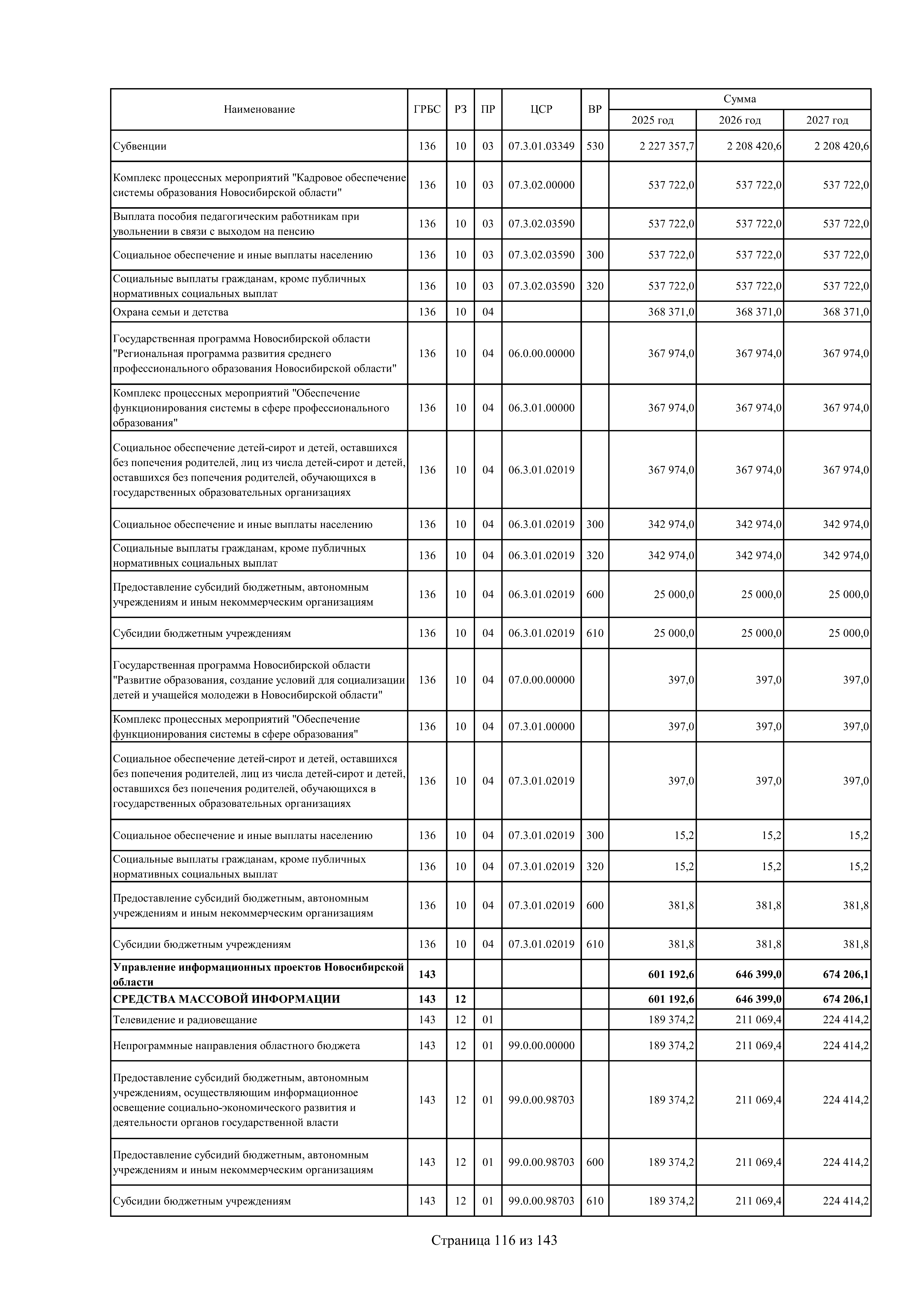 "Об областном бюджете Новосибирской области на 2025 год и плановый период 2026 и 2027 годов"