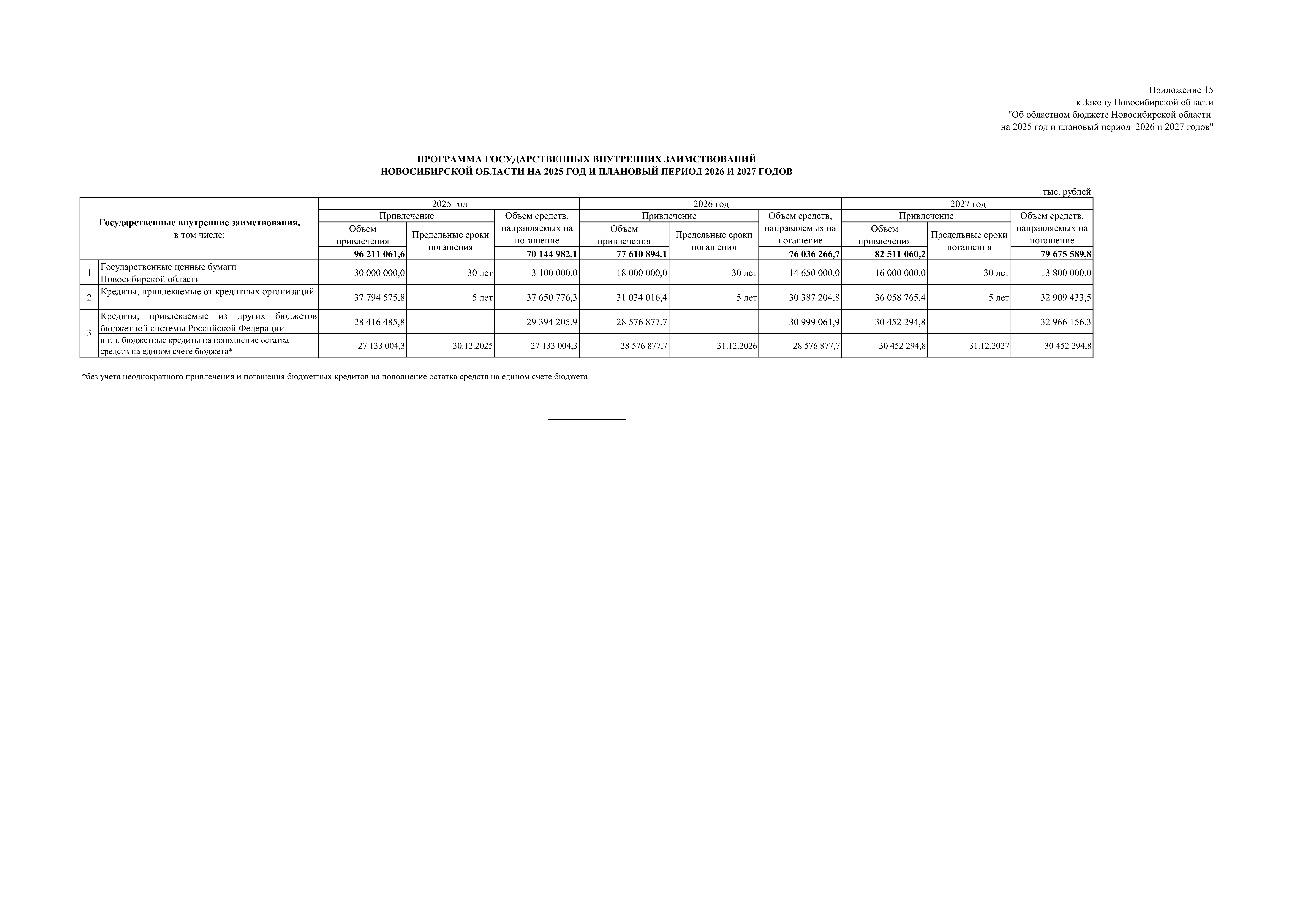 "Об областном бюджете Новосибирской области на 2025 год и плановый период 2026 и 2027 годов"