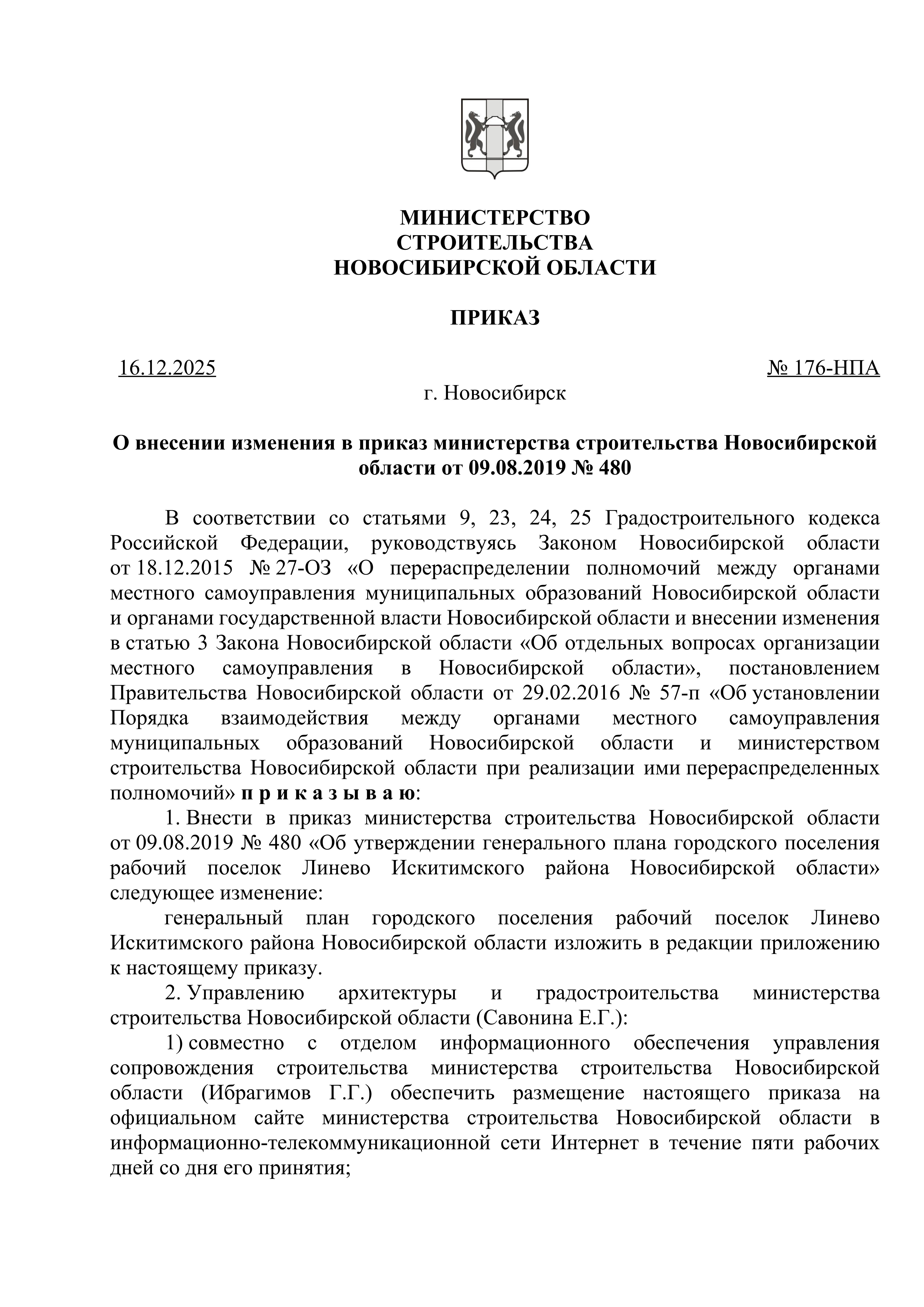 Приказ Министерства строительства Новосибирской области от 16.12.2025 № 176-НПА