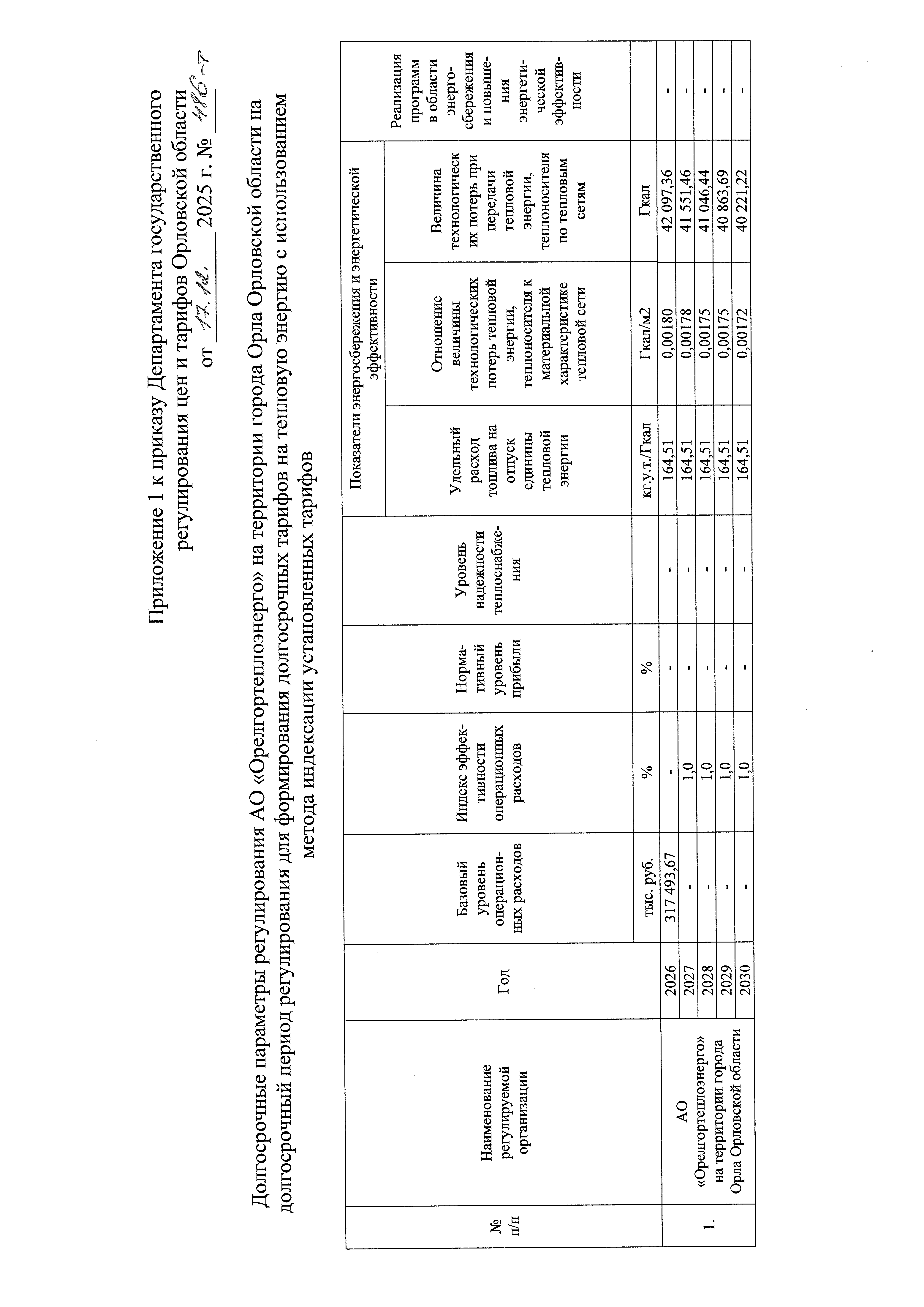 "Об установлении долгосрочных параметров регулирования и долгосрочных тарифов на тепловую энергию, поставляемую АО "Орелгортеплоэнерго" на территории города Орла Орловской области потребителям"