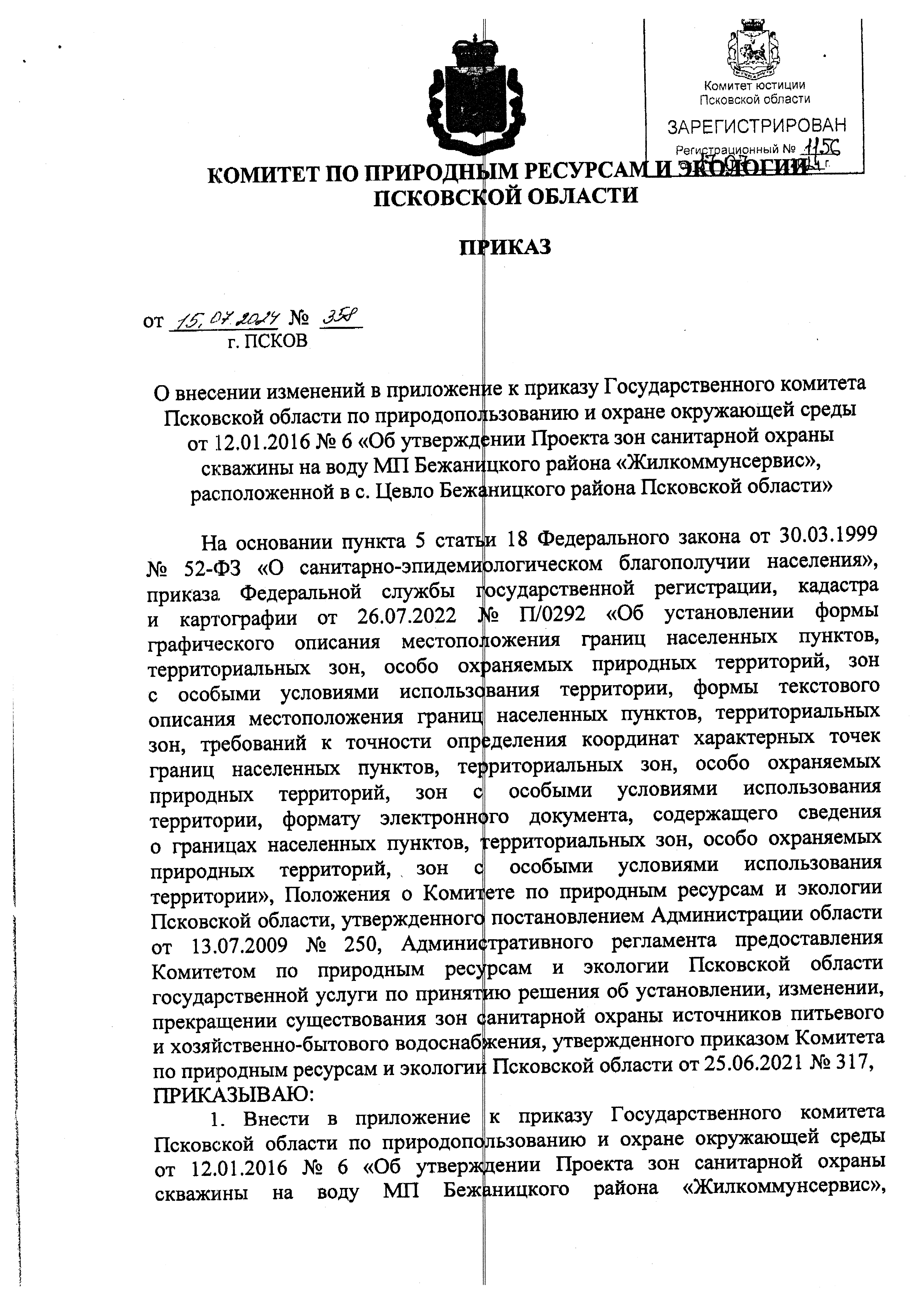 Комитета по природным ресурсам и экологии Псковской области от 15.07.2024 № 358