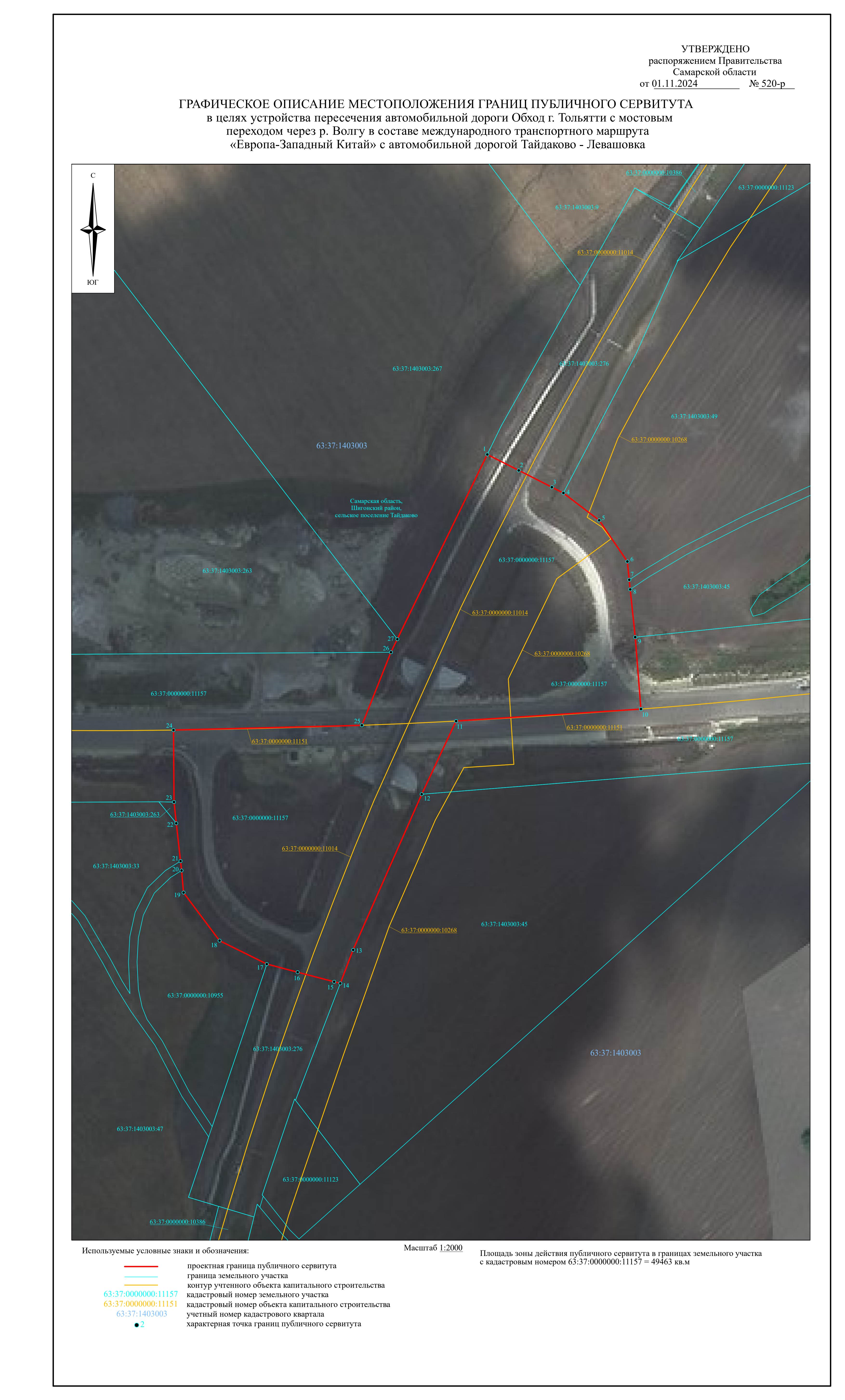 "Об установлении публичного сервитута в целях устройства пересечения автомобильной дороги Обход г. Тольятти с мостовым переходом через р. Волгу в составе международного транспортного маршрута "Европа – Западный Китай" с автомобильной дорогой Тайдаково – Левашовка"