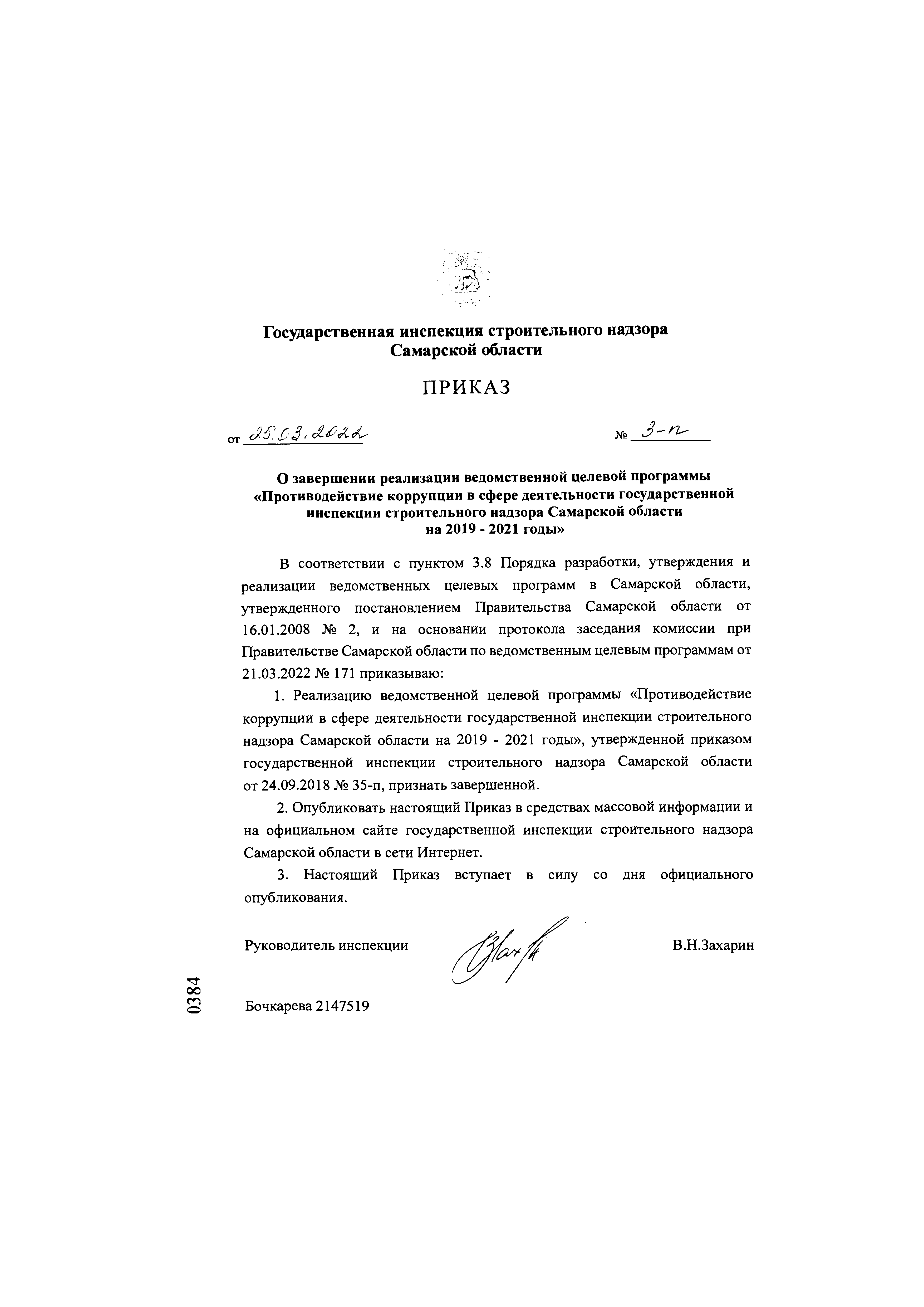 Приказ Государственной инспекции строительного надзора Самарской области от 25.03.2022 № 3-п