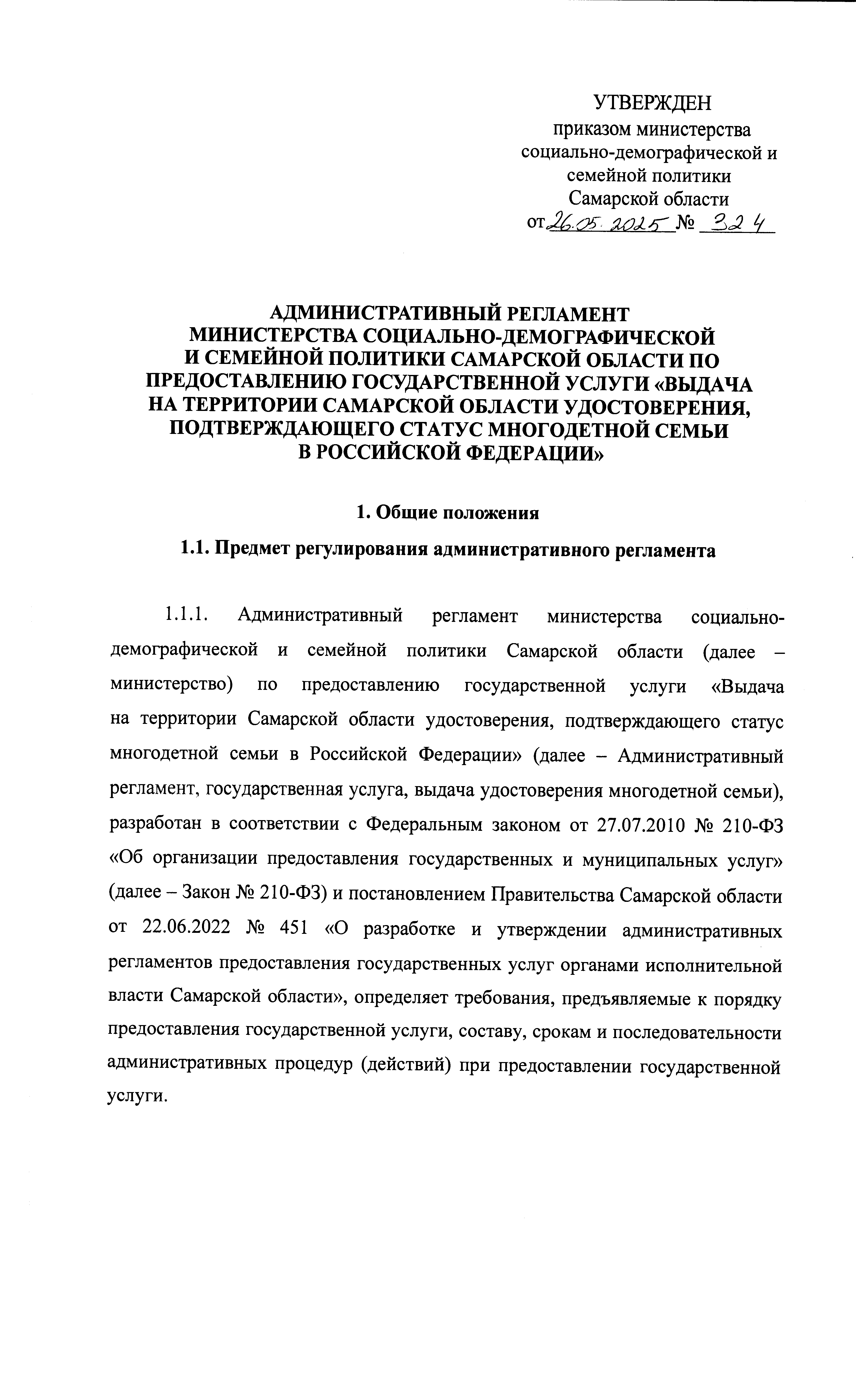 Приказ Министерства социально-демографической и семейной политики Самарской области от 26.05.2025 № 324