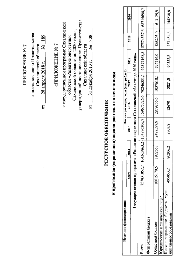 "О внесении изменений в государственную программу Сахалинской области "Развитие энергетики Сахалинской области до 2020 года", утвержденную постановлением Правительства Сахалинской области от 31.12.2013 № 808"
