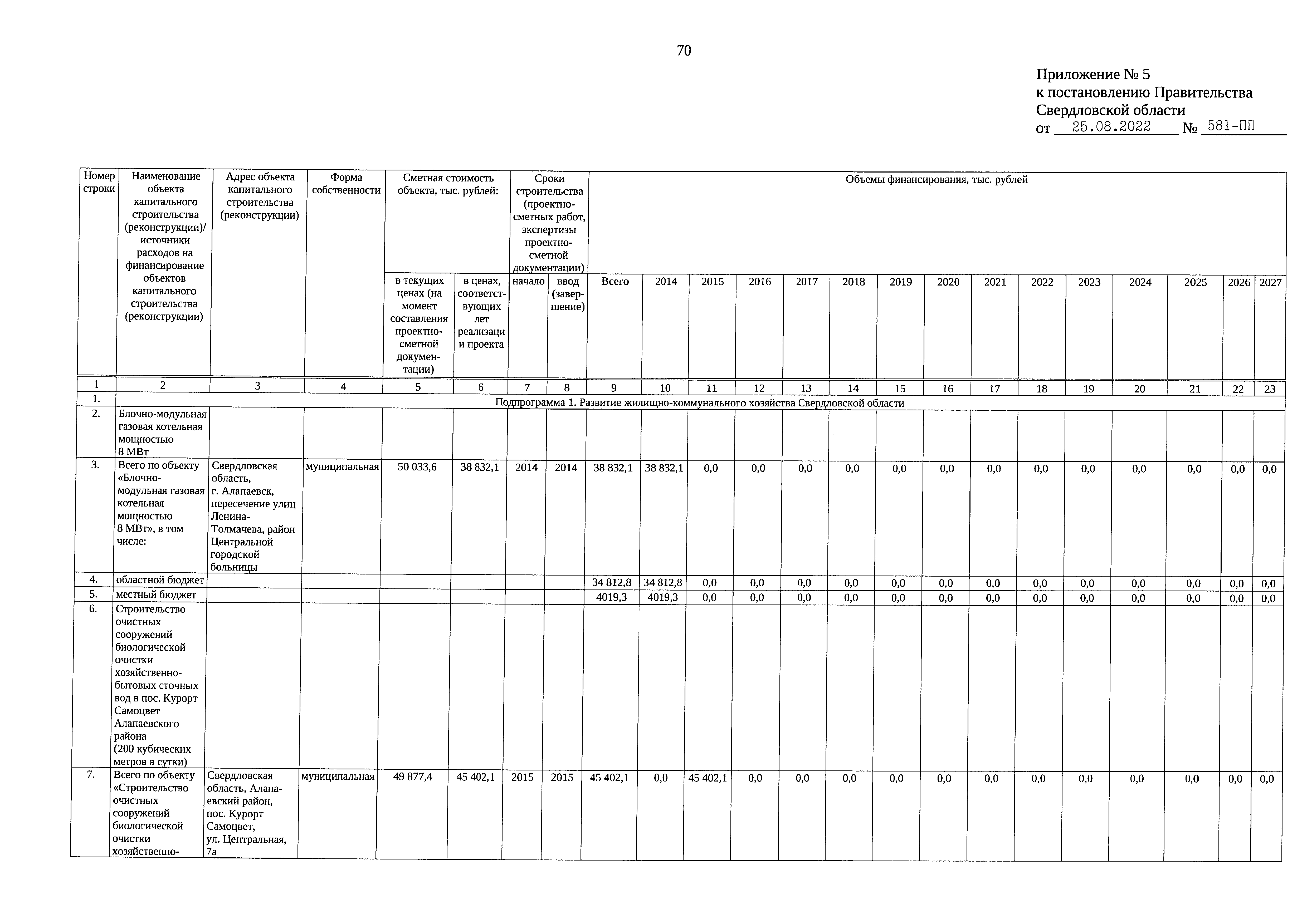 Постановление Правительства Свердловской области от 25.08.2022 № 581-ПП