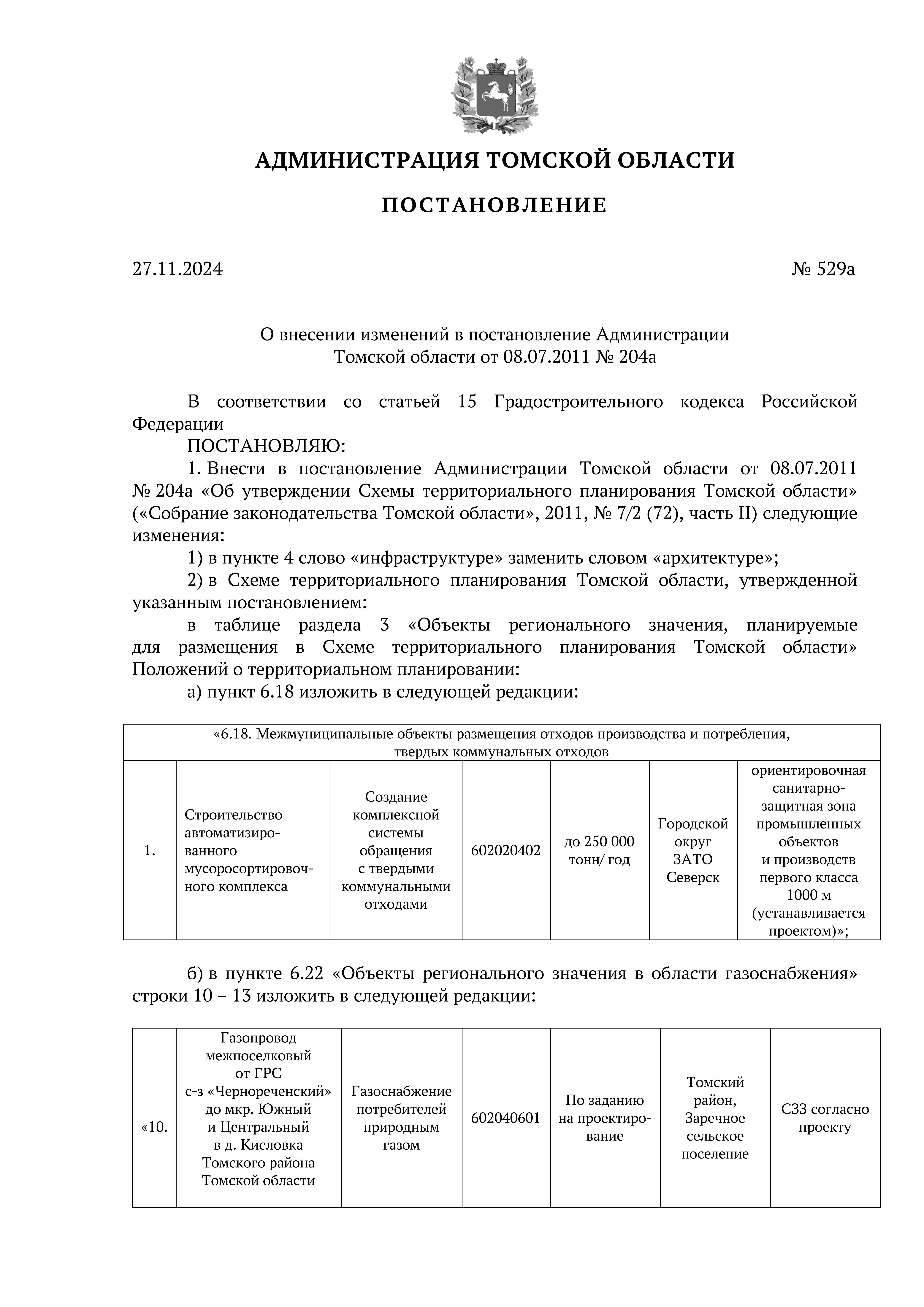 Постановление Администрации Томской области от 27.11.2024 № 529а