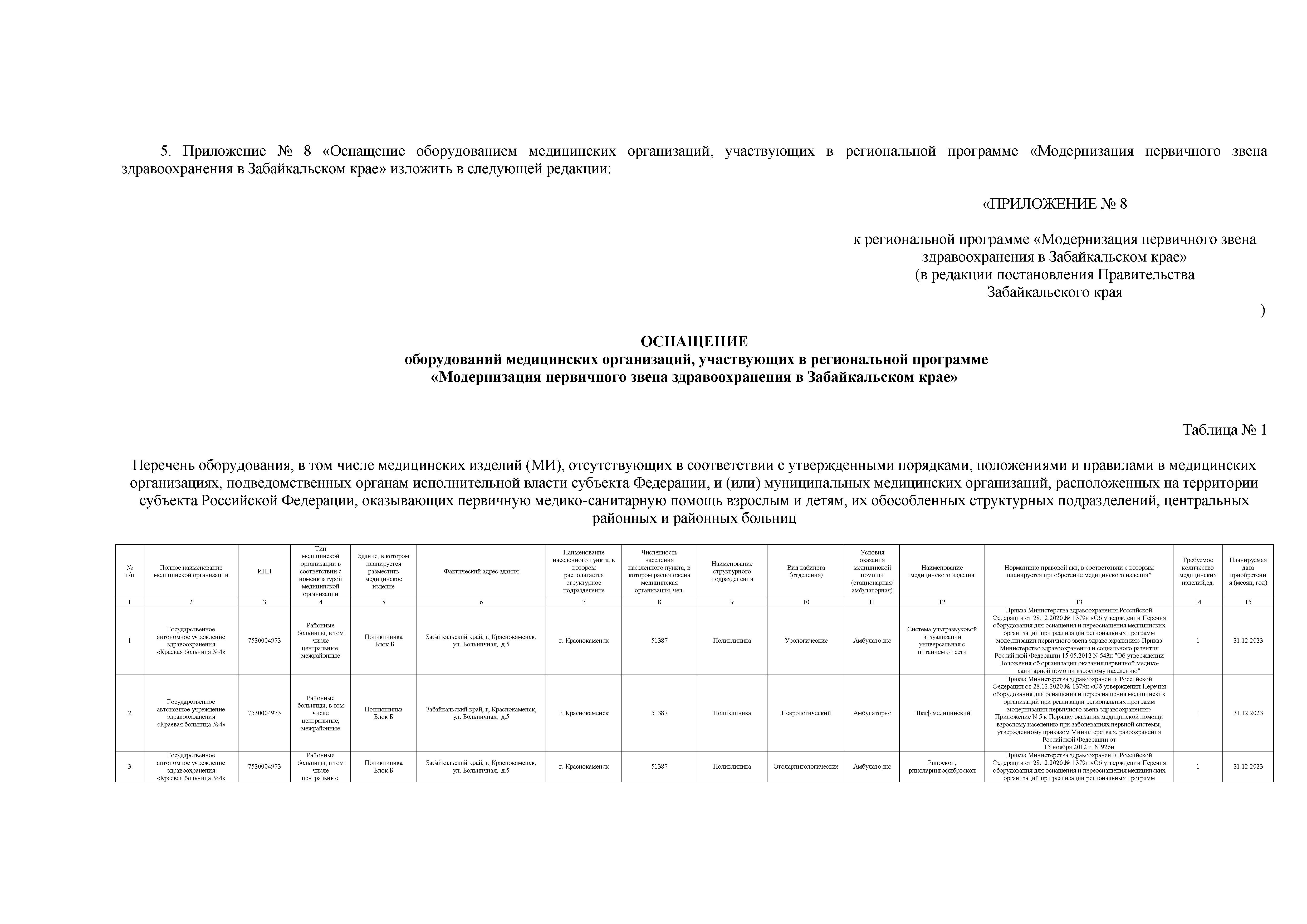 "О внесении изменений в региональную программу "Модернизация первичного звена здравоохранения в Забайкальском крае"