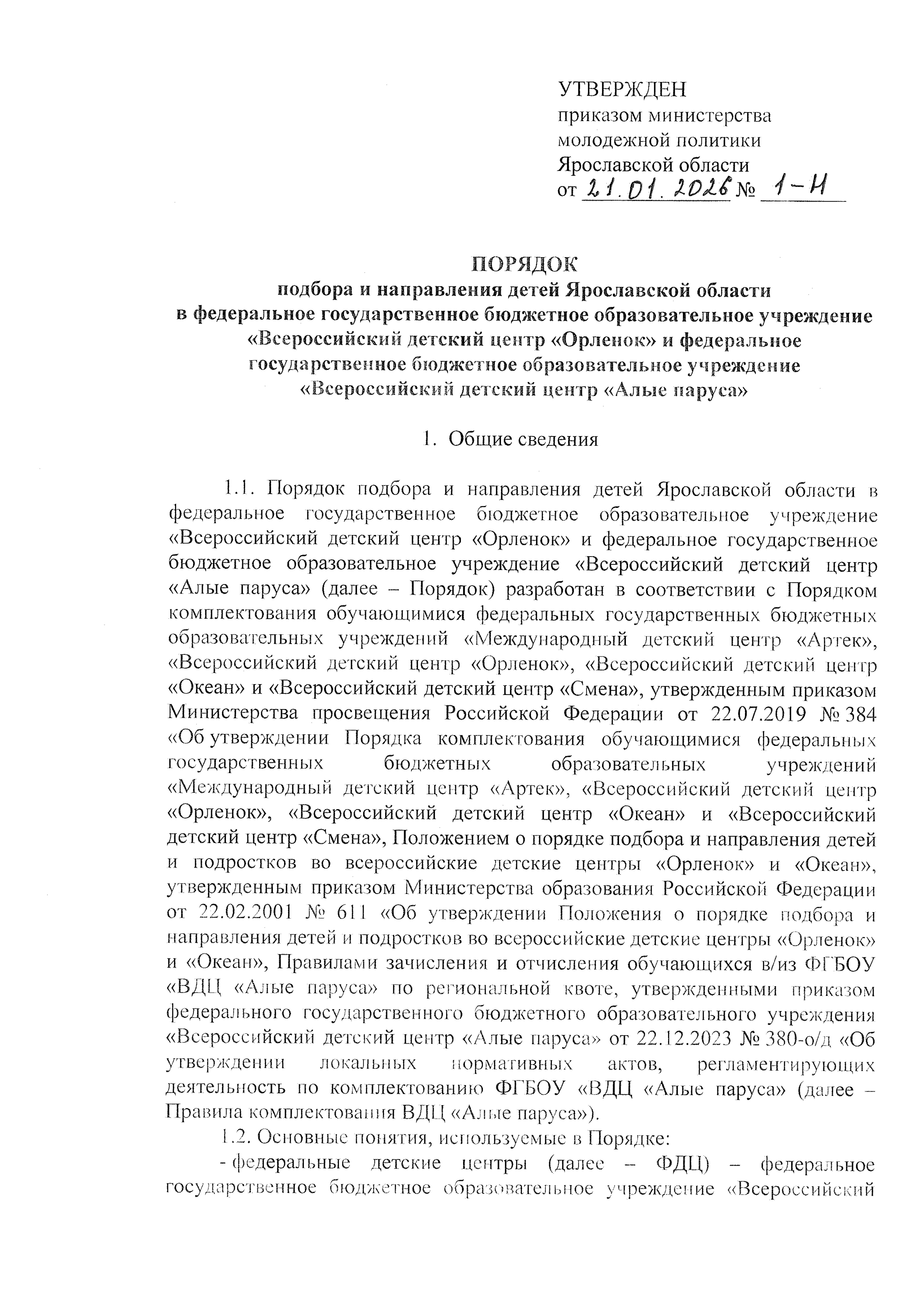 Приказ министерства молодежной политики Ярославской области от 21.01.2026 № 1-н