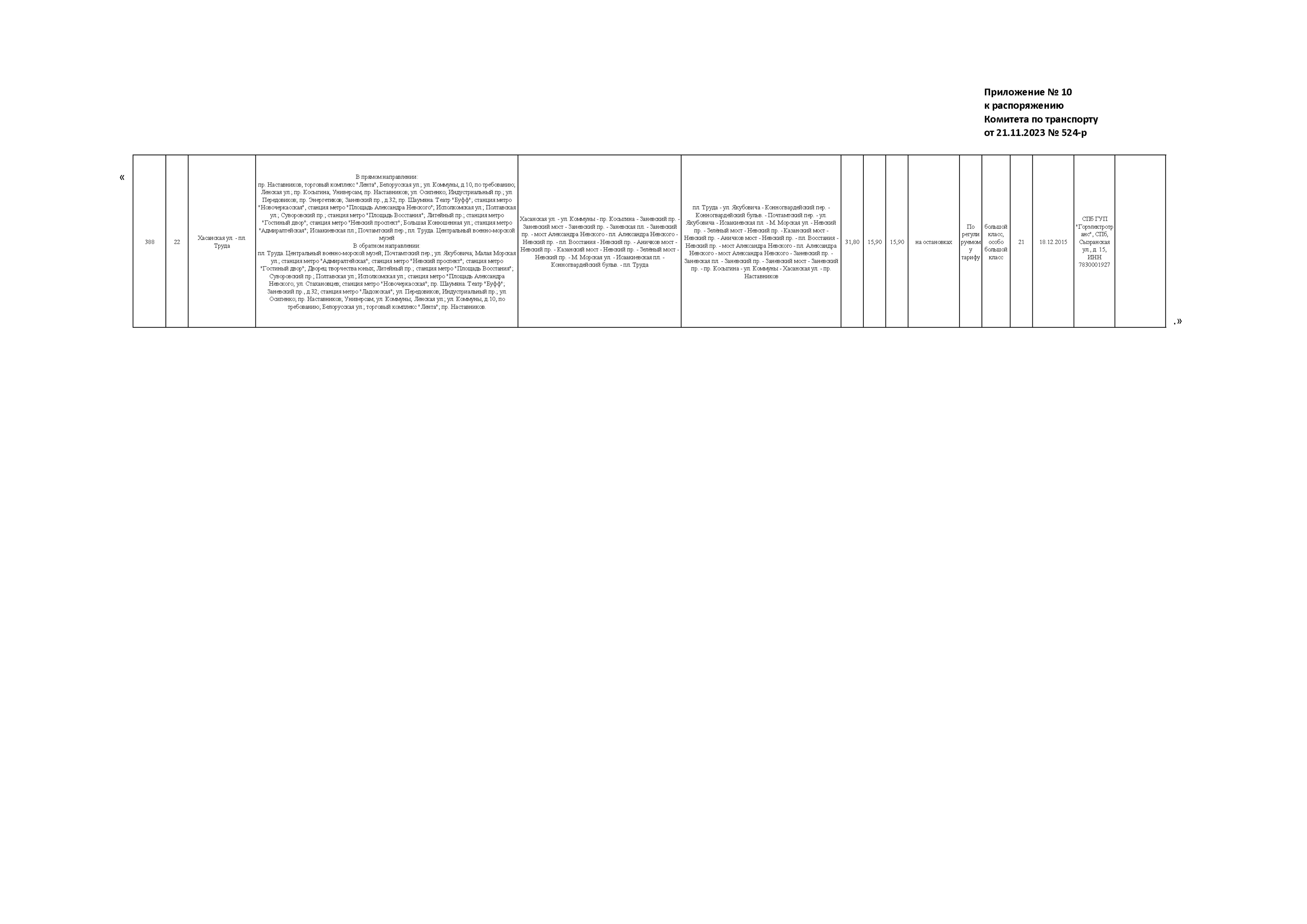 Распоряжение Комитета по транспорту Санкт-Петербурга от 21.11.2023 № 524-р