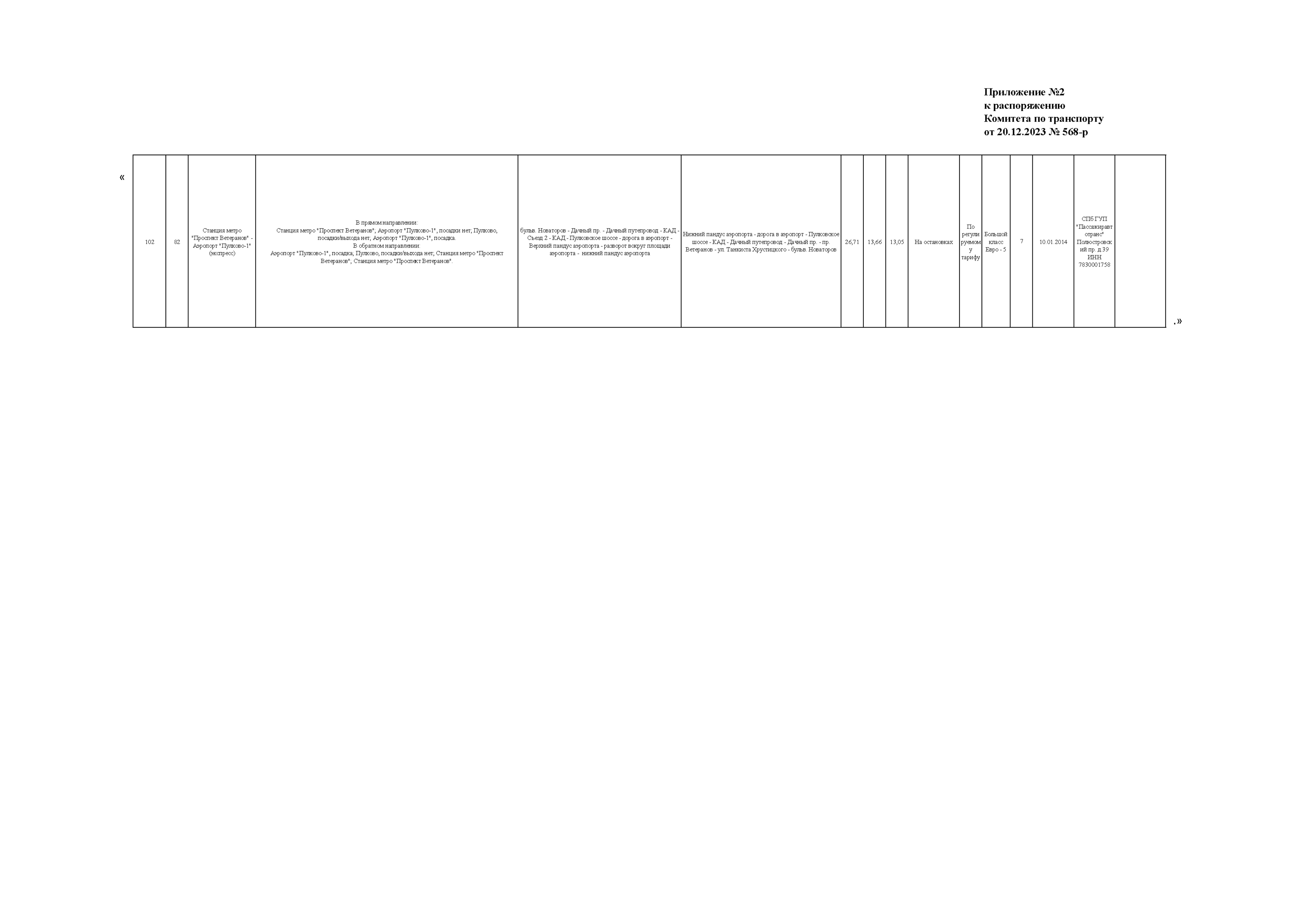Распоряжение Комитета по транспорту Санкт-Петербурга от 20.12.2023 № 568-р